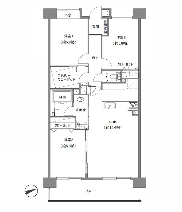 階数・所階階 | 9階建4階部分 | 間取り | 3LDK | 間取り内訳 | LDK15.6・洋5.8×2・洋5.9 | |||||||||