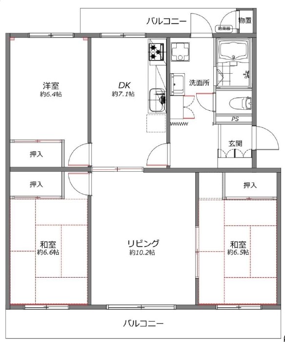 - 2面バルコニー, 一部リフォーム済み, フローリング, 3LDK, 2収納有り, バス・トイレ別,システムキッチン,