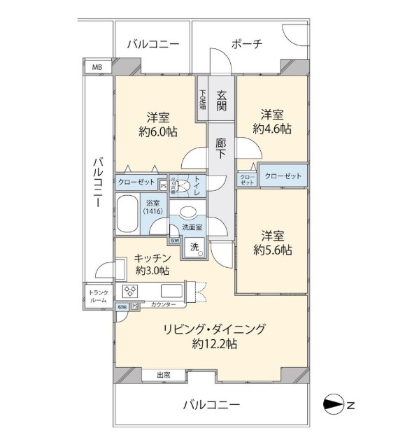 階数・所階階 地下1階付8階建4階部分 間取り 3LDK 間取り内訳 LDK15.2・洋6・洋4.6・洋5.6