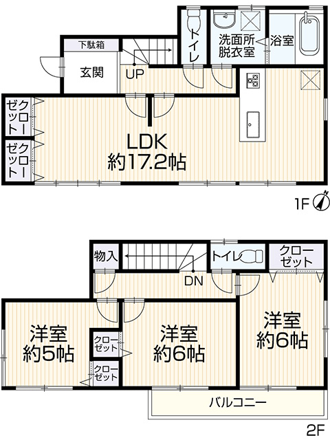 階数・所階階 | 2階建 | 間取り | 3LDK | 間取り内訳 | LDK17.2・洋5・洋6×2 | |||||||||