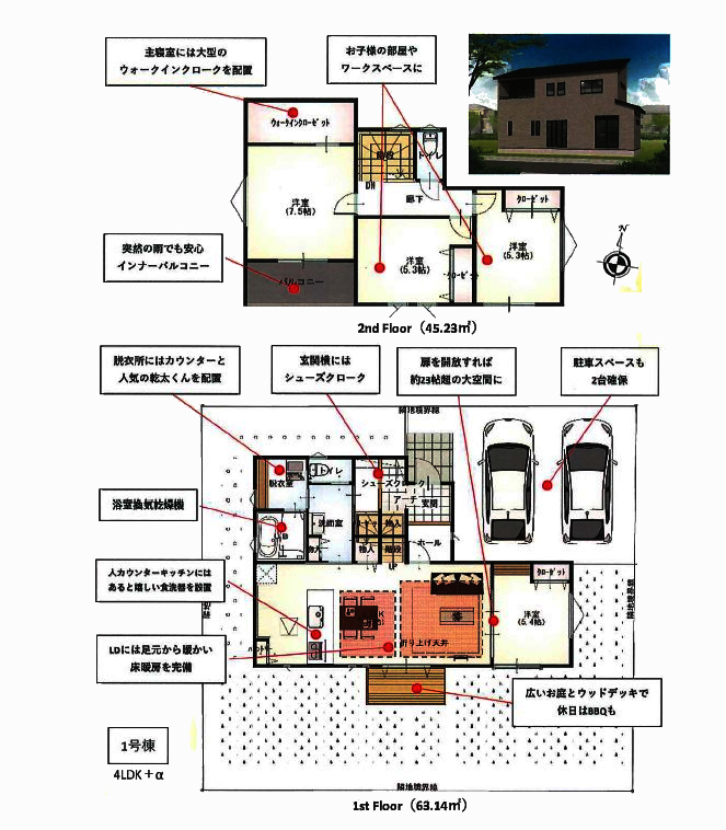 階数・所階階 2階建て 間取り 4LDK 間取り内訳 LDK18・洋5.4・洋7.5・洋5.3×2