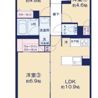 3LDK, 3面バルコニー, 各居室収納, システムキッチン, フローリング, バス・トイレ別,1階, 宅配ボックス, 角部屋, 防犯カメラ, モニター付インターホン,…