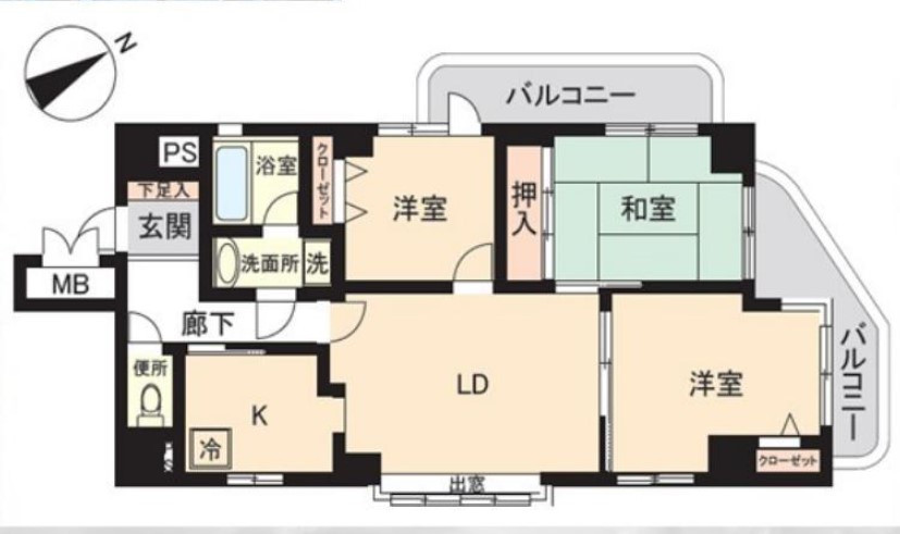 階数・所階階 9階建4階部分 間取り 3LDK 間取り内訳 LDK・和・洋×2
