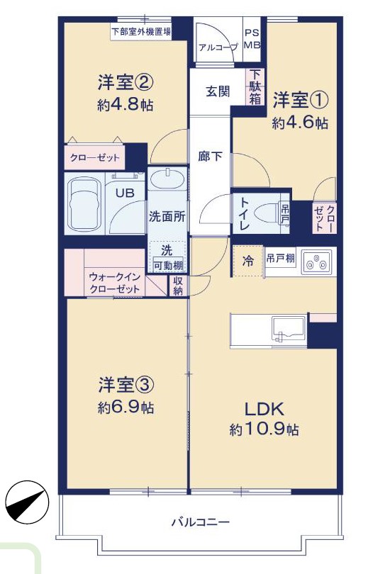 階数・所階階 7階建3階部分 間取り 3LDK 間取り内訳 LDK10.9・洋4.6・洋4.8・洋6.9