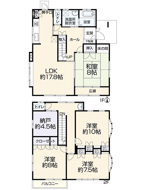階数・所階階 | 2階建 | 間取り | 4LDK | 間取り内訳 | LDK17.8・和8・洋7.5・洋10・洋8 | |||||||||