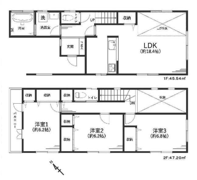 階数・所階階 | 2階建 | 間取り | 3LDK | 間取り内訳 | LDK18.4・洋6.8・洋6.2×2 | |||||||||