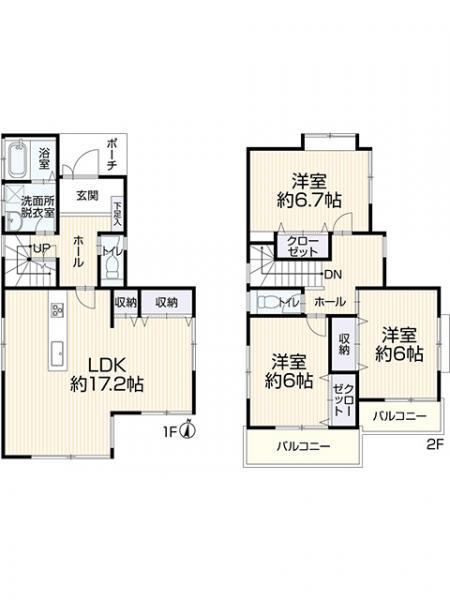 階数・所階階 | 2階建 | 間取り | 3LDK | 間取り内訳 | LDK17.2・洋6.7・洋6×2 | |||||||||