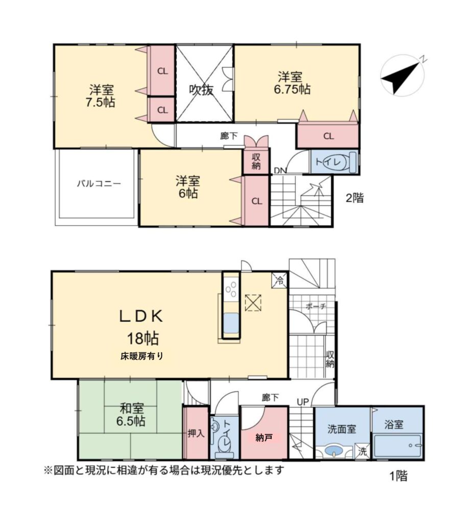 階数・所階階 2階建 間取り 4SLDK 間取り内訳 LDK18・和6.5・洋7.5帖・洋6.75・洋6・S1.8