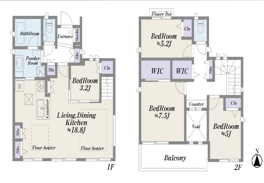 | 階数・所階階 | 2階建 | 間取り | 4LDK | 間取り内訳 | LDK18.8・居室×4 | |||||||||